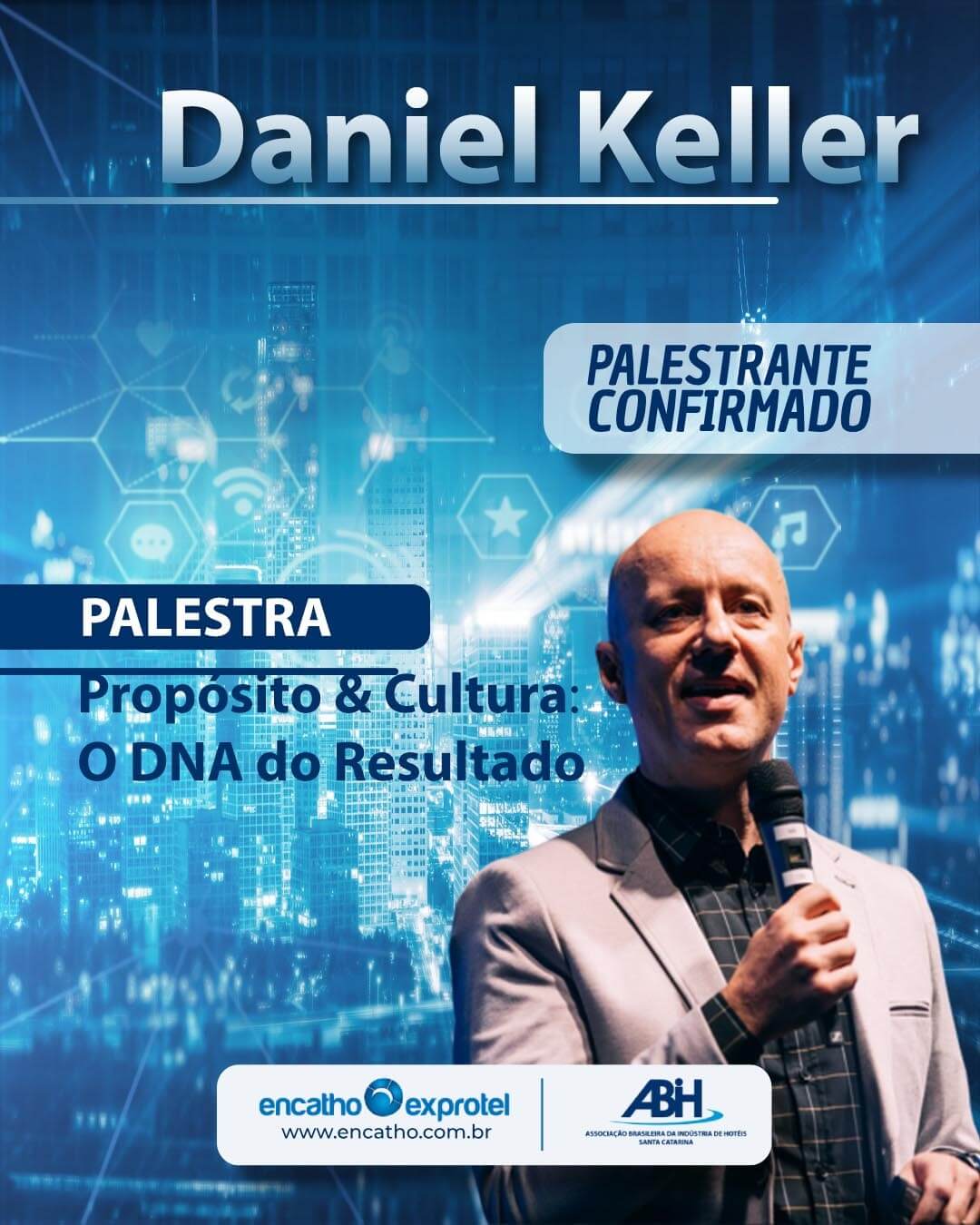 É com base nesses pilares que o especialista Daniel Keller conduz a palestra “Propósito & Cultura: O DNA do Resultado”, no dia 30 de julho, das 18h30 às 19h30, na Sala Joaquina, durante o Encatho & Exprotel 2025, em Florianópolis.